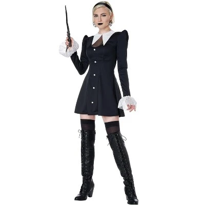 You’ll look like one of the most powerful witches around with this pretty witch costume. The Black Mini Dress Adult Costume includes a short black dress with long puffed sleeves, lace cuffs, pointed collar, and faux buttons for a spellbinding look. Now you’re all set to have some chilling adventures!