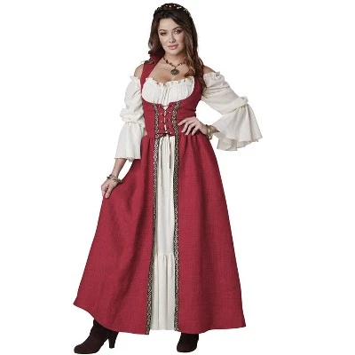 This beautiful, red overdress is the perfect key piece for your DIY renaissance costume. Layer it over a chemise to become a serving maid, peasant girl, or even a medieval fairy. With the right accessories, you can create whatever renaissance costume your imagination can come up with!