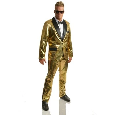 Got a fever? And the only cure is some disco swag? The cure to disco fever is here with this stylish Disco Dancin Tuxedo Jacket – Adult Costume Accessory. This shiny gold jacket will pair wonderfully with the provided pants and get ready to boogie. Browse our disco themed accessories to put the finishing touches on your costume!