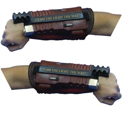 Stay razor sharp in your Deadshot costume and accessorize your outfit with his signature gun-toting gauntlets. This Deadshot costume accessory will take your outfit to the next level. Designed after the trusty weapons your favorite Suicide Squad member wears in the 2016 summer film, this accessory has the famous quote, I am the light the way, written across them for accuracy. And you know how important accuracy is for Deadshot.