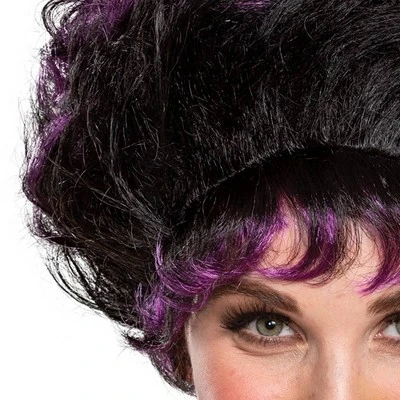 Celebrate your love for Hocus Pocus this Halloween! This super full wig features Mary’s midnight black hair with witchy purple streaks. The wig features her signature look from the original movie. It is made of quality faux hair and adjust to fit your head and stay put for the night. It pairs perfectly with our Mary costume!