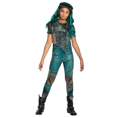 The Queen of the Isle of the Lost is a hot new Descendants Halloween costume idea! This Uma costume is easy to wear, striking and oh-so-regal. Metallic and sparkly, yet imposing, it’ll transform your princess into the royal character she loves. Includes jumpsuit, jacket and glovettes. Shoes sold separately..