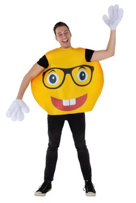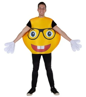 - GLASSES EMOJI – The emoji costume is complete with a tunic and set of white gloves.