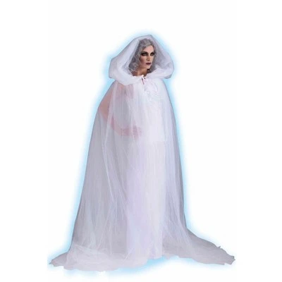 You can look spooky without looking gruesome in the Forum Novelties The Haunted Adult Costume. This costume includes a long, sleeveless white dress and an oversized, hooded white sheer cape. You can wear it alone or as part of any ghost or ghoul costume. Whether you like ghostly horror movies, ghost stories or just want a creepy look that isn’t over-the top, you’re sure to enjoy the Forum Novelties The Haunted Adult Costume. Friends and guests at your next Halloween party won’t mind being haunted by you because it’s hard to be afraid of a ghost that’s this good looking.