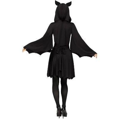 Everyone’s sure to take notice of you when you show up at your party in this Sweet Bat costume for women. This lovely costume features large bell sleeves with printed bones to look like a pair of huge bat wings. This dress also has an attached hood with bat ears for a sweet look.