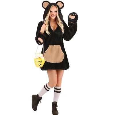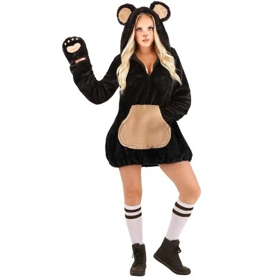 Let your wild side out and maintain your sweetness with this Cozy Brown Bear Hoodie. This large sweatshirt falls to your thighs and features dark and light brown fur for a full fuzzy look. The sweatshirt pocket is a lighter brown shade bear tummy and the sleeves have giant bear paws sewn for a fun transformation. The oversized hood pulls up to reveal two large ears and complete your look with one simple garment. Now, this is just right!