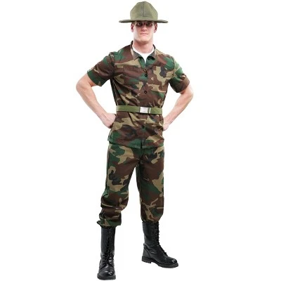 In this drill sergeant costume you’re sure to keep your recruits in line. Whether you’re wearing this uniform for Halloween or your own private training camp you’ll like the camouflage? pants with the matching short sleeved shirt and army green belt. And of course, everyone will know you’re status as soon as you put on the drill sergeant hat.