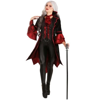 The Fun Costumes Adult Exquisite Vampire Costume Classic Halloween costumes are one of our favorite themes, which is why our team of artists, designers, and developers are tasked with producing new costumes of your favorite monsters and macabre mythological beings. This Exquisite Vampire outfit for women is a fun and luxurious style designed to ensure vampire fun for Halloween!Product Design:This women’s vampire costume is made with 100% polyester velvet & taffeta fabrics. It starts with a pinstriped vest with buttons at the center front and edged by columns of ruffles. A gunmetal fob chain attaches to the lowest buttons with elastic loops. The jabot fits with a same-fabric neckband and hook & loop fastener and features 3 tiers of taffeta flounces. The jacket is worn on top, it has a velvet outer shell with red trim, and features a taffeta lining and flounced sleeve cuffs for exquisite vampire elegance!Product Details:100% polyester velvet & taffeta fabricsPinstriped vest has buttons at front, edged by columns of rufflesGunmetal fob chain attaches to lowest buttons with elastic loopsJabot is 3 tiers of flounces on same-fabric neck band with hook & loop fastener at backJacket has velvet outer shell, taffeta lining & flounced sleeve cuffsAbout Us:Fun Costumes are exclusively made by us and begin with passion, teamwork, and industry expertise decades in the making. Our products are proof that with the right people even a simple idea can grow into something incredible. We started in a small garage in Minnesota, providing costumes to our local community, and now we’re creating costumes for people all around the world.