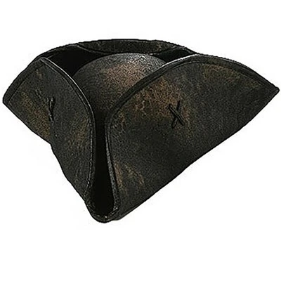 Maintaining control on the high seas is virtually impossible. You’ve got weird monsters climbing up from the depths, curses that you have to constantly cleanse, and treasure that never seems to be hiding exactly where it has promised to stay buried… not to mention loads of other competing pirates that are certain that they deserve to captain your ship more than you! There’s only so many things that a pirate captain can do to keep that edge… and swinging your cutlass and making mutineers walk the plank is only a solution for a short period of time. Eventually, they stop listening… or you run out of crew!Fortunately, the major symbol of pirate leadership hasn’t changed much over the years: the hat. A keen pirate hat commands attention and demands loyalty and you will be certain to have both with this Black Caribbean Pirate Hat. The black faux leather tricorn design makes for the most recognizable seafaring look and has a built in elastic band to ensure it fits well and is less likely to be blown away by any unexpected hurricane winds. Put your best foot (or peg-leg forward) and give the command to set sail to the next treasure horde because, with this hat, you have no fear of mutiny… probably.