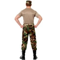 Gear up to join the army or some other combat regiment with this Men’s Camo Soldier Costume. This costume includes a shirt, pants, belt, and hat. The pants have an elastic waistband and have two working pockets. The hat is one size fits all so no matter who you are you will be ready to roll out.