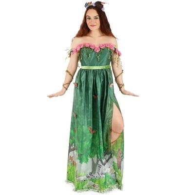 The Fun Costumes Women’s Mother Nature CostumeBring the power of the natural world to bear when you go as Mother Nature for Halloween! You can channel the magical and mystical powers of the natural world when you go is this sublime mother earth dress for women. Designed with whimsical elements of earth’s loveliest offerings, we’re sure you’ll love this costume’s unique style!Product Design:Bring the magic of nature to your own home when you become Mother Nature with this exclusive costume. You’ll enjoy the numerous details in this lovely gown that is printed to look like you are the essence of a woodland environment, including tall trees, bright flowers, and butterflies that look ready to take flight. Wrap the whole look together with vine-like bands, but the crowning moment will be wearing your headdress: a nest of birds and butterflies! Product Details:100% polyester dress with accessoriesNylon dress has chiffon leaves on the hemlinePlastic butterflies attached on the dressVelvet trim around the waistBraided leaf leg and arm wrapsPlastic headband has faux flowers, plastic butterflies and a bird nest attachedAbout Us:Fun Costumes are exclusively made by us and begin with passion, teamwork, and industry expertise decades in the making. Our products are proof that with the right people even a simple idea can grow into something incredible. We started in a small garage in Minnesota, providing costumes to our local community, and now we’re creating costumes for people all around the world!