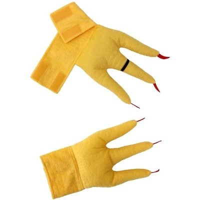 Perfect your chicken costume with these easy-to-wear CreatureCuffs Chicken Feet! The feet are shaped with scale-textured polyester and fiber-filled to give them their distinctive look. Red felt claws are attached to the end of each toe. The cuff wears securely around the ankle with hook-and-loop fasteners while an elastic loop holds under your shoe to keep the feet firmly on the ground as you walk!