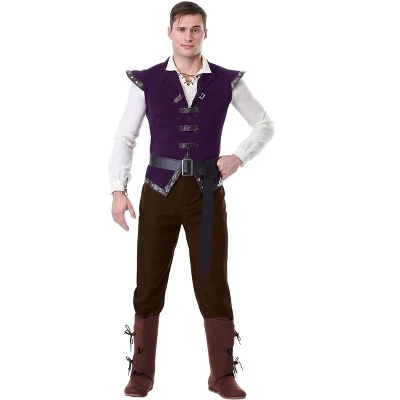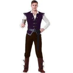 Travel back to a simpler time when you step into the role of the Tavernmaster with this Renaissance Tavern Man Costume. This high-quality look features a cotton, high-collared shirt with leather cords at the neck and wrists and a luxurious plum vest that has buckles down the center for closure. The extra long belt has a dark silver buckle and extra length for an authentic Renaissance look. Complete the outfit with some high boots and a goblet and you’ll barely need the tavern, itself!
