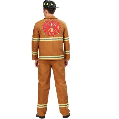 It’s time to live out that childhood dream. This adult firefighter costume has a realistic look that will make you look like a real firefighter. It comes with a tan jacket, a pair of matching pants, and a black fire hat. The jacket has yellow reflective stripes on the chest and sleeves, and it even has a patch sewn onto the shoulder. The pants have a matching yellow stripe around each pant leg. Just put it all on, and you’ll be ready to roleplay as your childhood dream job.