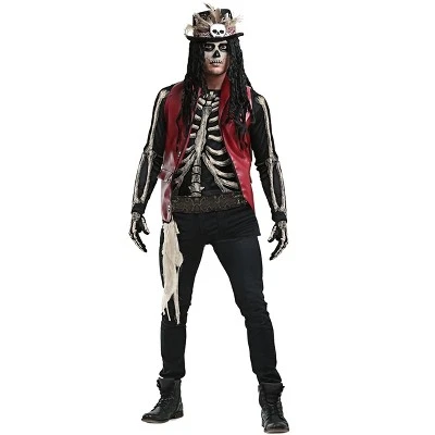 The Fun Costumes Men’s Voodoo Doctor CostumeBecome a very intense character when you choose this Men’s Voodoo Doctor costume. So intense, in fact, that you might even cast a real spell! You’ll find the spooky style you’re looking for this Halloween when you choose this detailed Voodoo costume. And that’s exactly why we made it. This costume is indeed, Made by Us, another creation lovingly crafted by our team of artists, designers, and developers. With the style and unique design of this stand-out costume, we’re sure it’s going to help you have quite the memorable costume experience.Attention to DetailWe designed this costume as a shirt, vest, belt, hat, and pair of gloves; each piece with a unique design and extra emphasis on one-of-a-kind details. The shirt has a handmade bone look created by printed skeleton details with shading for an almost 3D-like effect. Layer the red vinyl vest over the shirt, it has skull button details on the front and a printed snake design on the back. The hat is intricate with a burlap overlay and a skull and feathers in the center of the brim. It also included bone printed gloves along with a fabric covered foam belt with attached loops and pouches to attach accessories.Product Details:Pull on shirt has printed design on front on shirt and sleevesVest has faux front pockets with attached pocket square and appliqued skull decorationsVest also has printed design on backBelt is fabric covered foam with hook and loop closure in back and attached loops and pouches for accessoriesHat is formed felt with attached burlap trim and removable band with attached skull and feather decorationsPull on gloves have printed design on frontAbout Us:Fun Costumes are exclusively Made by Us and begin with passion, teamwork, and industry expertise decades in the making. Our products are proof that with the right people even a simple idea can grow into something incredible. We started in a small garage in Minnesota, providing costumes to our local community, and now we’re creating costumes for people all around the world.