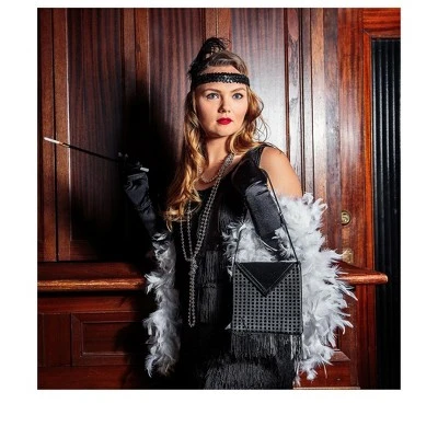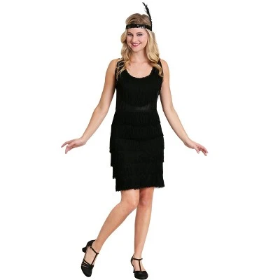 The Fun Costumes Black Fringe 1920s Flapper CostumeReady to make a big splash at the costume party? All you have to do to stand out this Halloween is to show up as a dancer from the flapper era! We love creating costumes from historical periods, and the Roaring 1920s is definitely one of the coolest eras in terms of costumes. And that’s why our team crafted this Black Flapper Dress Costume. With extra attention to detail from our team of artists, designers, and developers, you can be sure this costume has the quality, style, and durability you’re looking for!Attention to DetailWe designed this costume as a stunning black dress inspired by the Roaring 1920s period of American history. The dress has seven rows of fringe, which swish and sway with your every move. It is made of polyester and features black sequin trim at the top. A black sequin headpiece with a black feather is also included and secured in place with elastic. Product Details:100% polyester tricot fabricSleeveless pullover tank dress has 7 rows of fringeSequin edging at scoop necklineSequined elastic headband has upright feather at front, hook & loop fastener at backAbout Us:Fun Costumes are exclusively Made by Us and begin with passion, teamwork, and industry expertise decades in the making. Our products are proof that with the right people even a simple idea can grow into something incredible. We started in a small garage in Minnesota, providing costumes to our local community, and now we’re creating costumes for people all around the world.