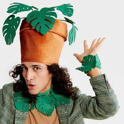Show off your love for plants and nature at the next Halloween party with the House Plant Halloween Costume Accessory Kit from Hyde & EEK! Boutique™. This houseplant costume accessory kit includes a leaves-pattern collar, wrist cuffs and a brown hat with leaves coming out of it. Made with a soft and lightweight fabric, this Halloween costume accessory kit offers comfort, and is suggested for ages 14 and above.
