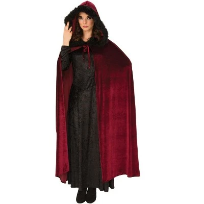 Add a touch of drama to your costume with this Burgundy Baroness Cape. This velvet hooded cape in red features a faux fur trim that would be perfect for adding the finishing touch to any costume.