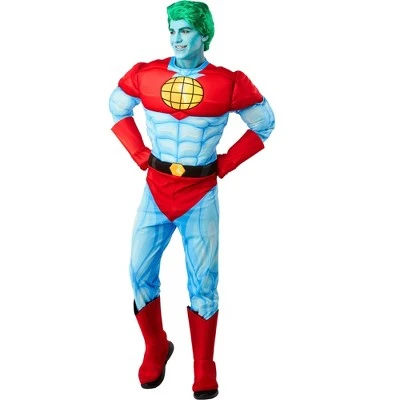 Gaia will certainly be safe in your hands this year when you get all dressed up in our Captain Planet Adult Deluxe Costume. With this fun planetary set, you will receive everything you need to become planet Earth’s greatest protector. Featuring a muscle padded blue and red jumpsuit with a big yellow globe logo on the chest, a pair of red boot covers, and a matching pair of gloves, you’ll be fighting evil pollutants and villains in no time while donning this powerful get-up.